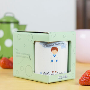 En mi primera comunión cuento con la mejor compañía y con esa ilusión que todo lo hace brillar. Es un día para guardar en el rincón más preciado de mi corazón, un momento para recordar con esta taza, porque en ella cabe el sabor de los momentos especiales, esos que nunca se olvidan.